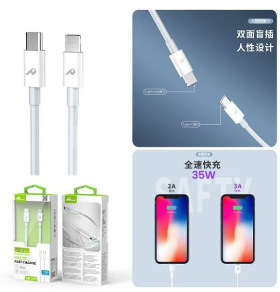 Cavo di ricarica veloce da 35W con connettore Type-C verso iPhone, progettato per garantire prestazioni ottimali. I 2metri di lunghezza offrono flessibilità d'uso in qualsiasi ambiente, dalla scrivania al divano. Dotato di tecnologia di protezione intelligente per una ricarica rapida e sicura dei tuoi dispositivi Apple.