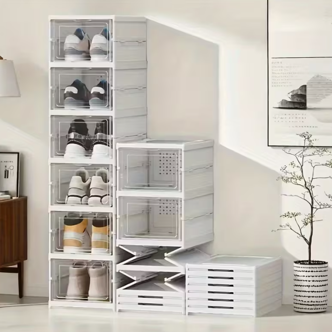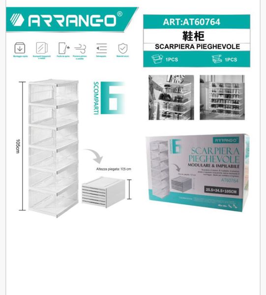 Organizza le tue scarpe con stile e praticità. Questa scarpiera trasparente a 6 piani massimizza lo spazio verticale, permettendoti di visualizzare facilmente ogni paio. Il design pieghevole la rende perfetta per ripostigli, camere da letto o ingressi. Dimensioni compatte (105cm x 25cm x 34cm) si adattano a qualsiasi ambiente. Realizzata con materiali resistenti, offre stabilità e durabilità nel tempo. Ideale per chi desidera ordine senza compromessi estetici.
